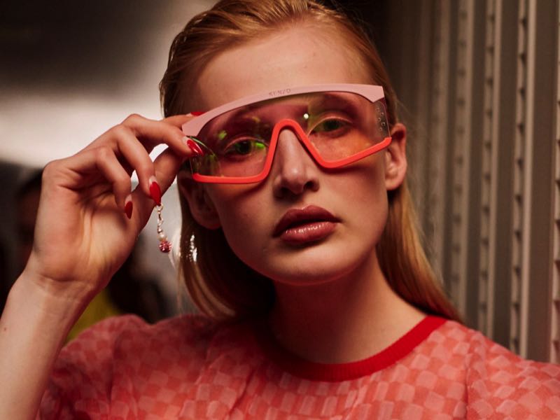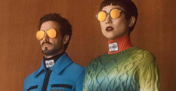Nous retrouvons les imprimés des tissus KENZO, colorés et atypiques essentiellement sur les branches des lunettes de soleil. Permettant de créer des solaires facile à porter avec une touche d’originalité.
